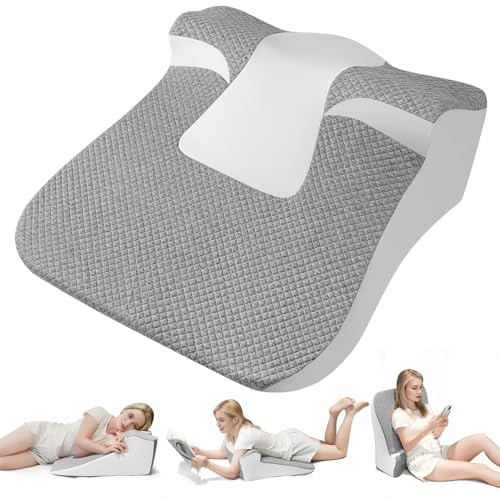 YRuiSofut Bed Wedge Pillow for Headboard, Ergonomic Wedge Pillow for Sleep Apnea, Memory Foam, Reading Pillow for Back, Neck and Head, Comfortable Support, Grey