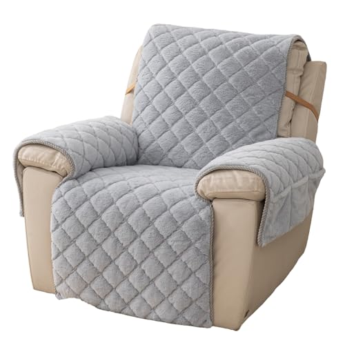 Lovehavren Plush Recliner Slipcover 23 Inches - Washable & Quilted Faux Wool Cover for Lazy Boy Chairs & Furniture. with Side Pockets, Large Recliner Chair Covers, Safe for Children/Pets,White