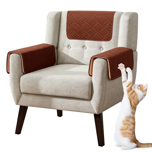 Couch Armrest Covers for Sofa with 2 Big and 4 Small Side Pockets Recliner Arm Protector Washable Living Room Armchair Caddy Organizer Chair Bedside Storage Book Magazines Waterproof(Light Gray)