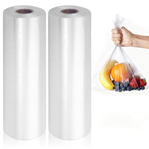 10" x 14" Plastic Produce Bags Roll锛2 Rolls Clear Plastic Bags for Food, Fruit, Vegetable, Refrigerator Storage锛孠itchen, 400 Bags/Roll