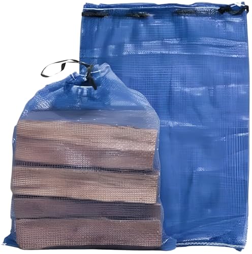 Mesh Firewood Bags for Wood Storage - Heavy Duty Wood Bags for Firewood - Reusable w/Drawstring & UV Protection - Breathable (20x24 50-Pack,Blue)