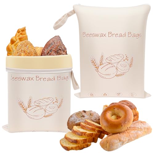 YARRAMATE Beeswax Bread Bags for Homemade Sourdough, Zipper Reusable Linen Food Storage Bags to Keep Loaf Fresh, Large Freezer Safe and Eco Friendly Bread Containers (17x13", 2 Pack)