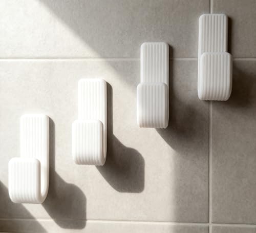 Wall Mounted Hooks for Bathroom Door Clothes Towel Robe and Coat,Self Adhesive Waterproof Hangers Aluminum (S-White-4)
