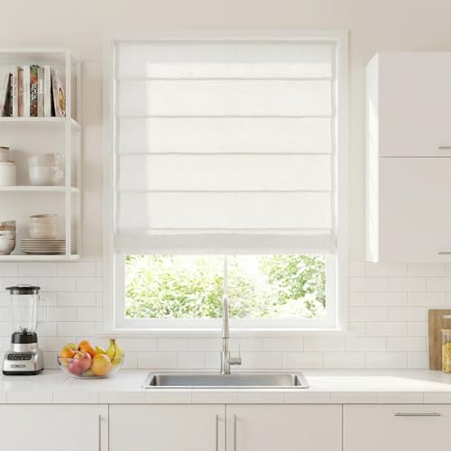 StangH Natural Linen Roman Shade for Doors, Cordless 100% Blackout French Door Shade with Magnetic Lift, Easy Install Privacy Window Blind for Living Room Office, W 26 x L 64, 1 Panel