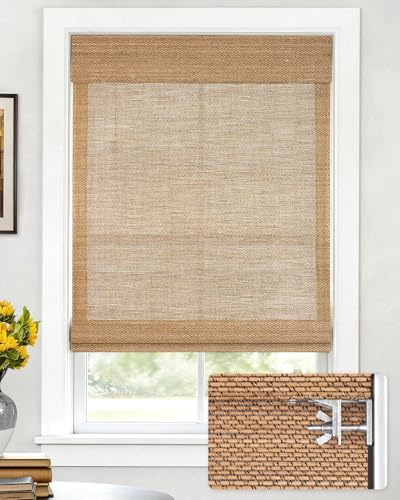 Natural Woven Jute Roman Shades for Windows锛孋ordless Roman Shades Light Filtering Linen Fabric Blinds for Door,Bedroom,Living Room,UV Protect,Thermal Insulation,Light Filtering-Logs,41" W x 36" H.