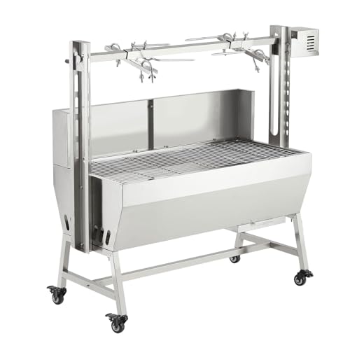 INTBUYING 46 Inch BBQ Rotisserie Grill Charcoal Spit Grill Pig Lamb Spit Stainless Steel Rotisserie Roaster, 90 Lbs Capacity Rotisserie Roaster 110V