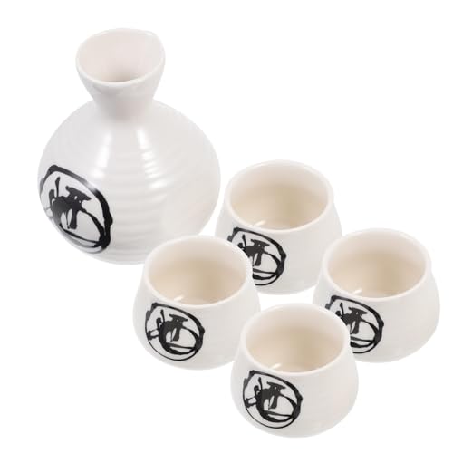 Sizikato 5PCS Stoneware Porcelain Sake Set Include 1PCS Sake Bottle and 4PCS Sake Cups