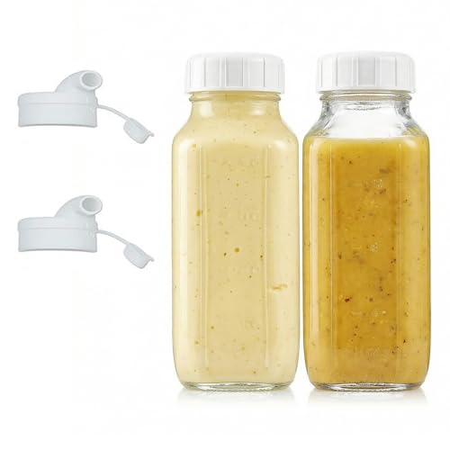 Lwuey 200ml Salad Dressing Shaker, Kitchen Leakproof Sealed Dressings Bottle BPA Free Prevent Leakage Salads Dressing Jar with Lid Clear Mixer Bottles Scale Container for Soy Sauce Lemon Juice(Green)