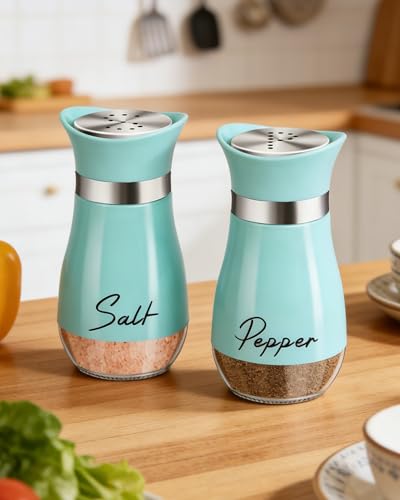 4pcs Salt and Pepper Shakers Set, Salt Shaker and Pepper Shaker with Adjustable Pour Holes, Pepper and Salt Container with Stainless Steel Lid,Glass Salt and Pepper Shakers,Spice Shaker for Kitchen