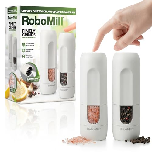 Gulex庐 Pepper Grinder Set Pepper Mill, Salt Grinder Refillable, Adjustable Coarseness Black Pepper Grinder, Stainless Steel Sea Salt Shaker with Ceramic Rotor(salt and pepper not included)