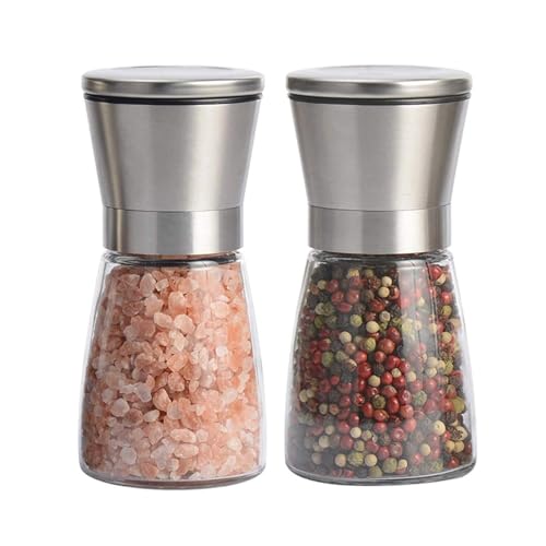 Salt and Pepper Shakers Set, 4 oz Stainless Steel Salt Pepper Shaker Containers with Glass Bottom for Kitchen Cooking, BBQ, Bar, Table, RV, Camp