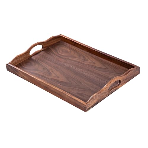 Linwnil 2 Pack Solid Wood Coffee Serving Platters and Trays of Natural Wood with Edge, Rectangular Avoid Sliding and Spilling Food (Walnut Trays x 2Pack)