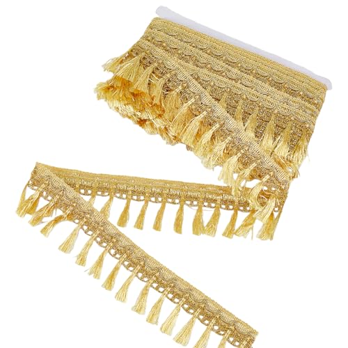 OLYCRAFT 10 Yards Gold Coin Shape Sequin Tassel Trim Sequins Lace Tassel Fringe Trim 1.6 Inchm Width Sequins Tassel Lace Ribbon Fringe Dance Dress Belt Chain for Clothes Decoration Party Accessories