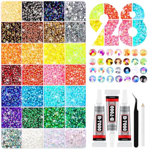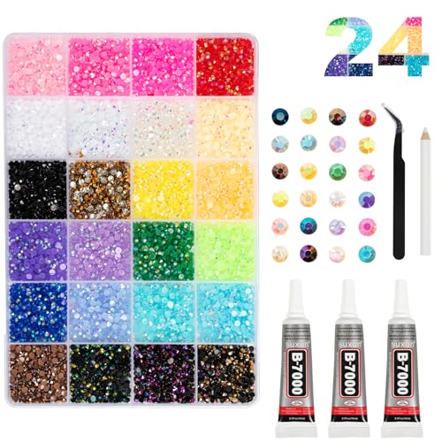 24000pcs Jelly Resin Rhinestones with Tweezers for Crafts, Mixed Gems, 3mm Non Heat Setting, Crystals for DIY Clothing, Glasses, Cups, Shoes, Fabric, Nail Decor