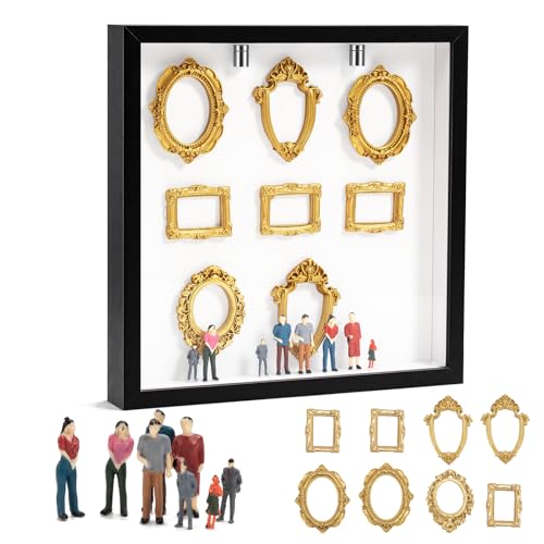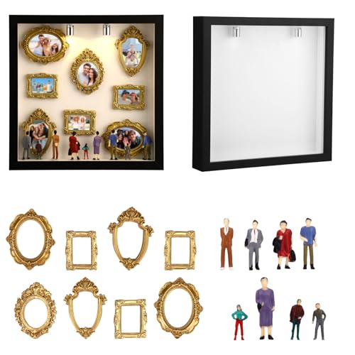 DIY Mini Museum Silhouette Box, Shadow Box Frame Kit Include 1 Silhouette Case 8 Small Photo Frame 8 Mini Figure 2 Light Multiple Adhesive Dots for Personalized Unique Memory Decor