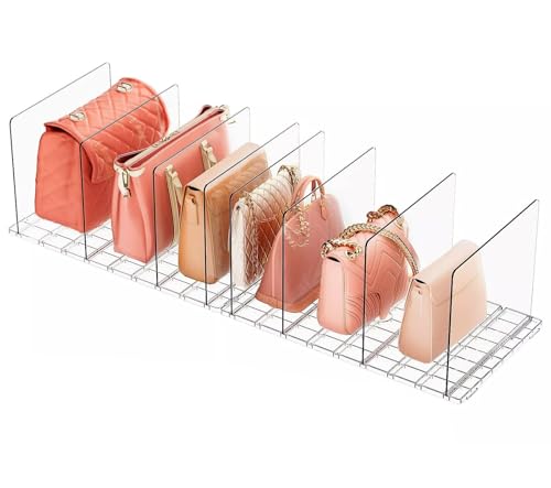 Acrylic Clear Purse Storage Organizers, Purse Organizer For Closet, Clear Plastic Purse Handbag Organizer,Desk File Sorter Purse, Closet Shelf Divider Purse Display Stand(4 Grids)