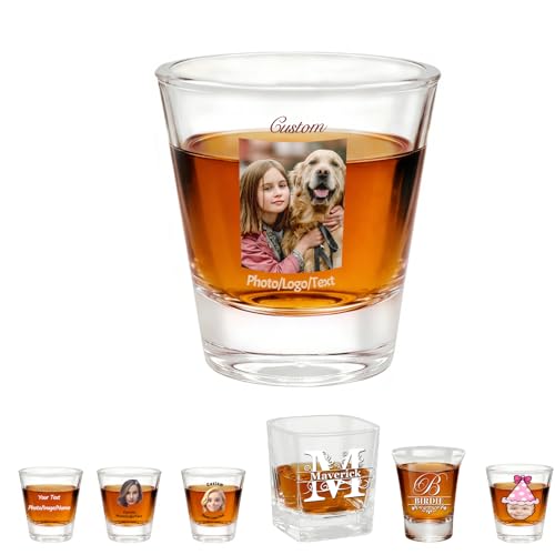 YOUEON 12 Pack 1.5 oz Shot Glasses Set, Etched Glass Shot Glasses with Heavy Base, Small Goblet Shot Cups for Tequila, Whiskey, Vodka, Liquor, Mini Cordial Glasses for Party Bar