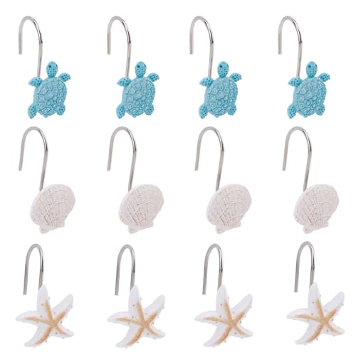 Sunlit Sea Turtle Shower Curtain Hooks, Home Decorative Shower Curtain Rings for Bathroom, Resin, Ocean Shower Curtain Hanger Hooks for Kid Room Living Room, Set of 12