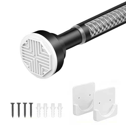 Vista Shower Curtain Rod Tension 27.6-118.1 Inch No Drill Diameter 1.26Inch Anti-Rust Extendable Black Curtain Rod for Windows Bathroom Closet and Patio