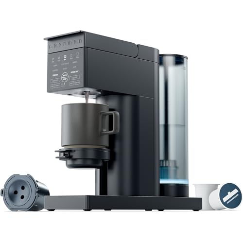 Chefman Caffeinator Single Serve Coffee Maker, Brew Kcups & Grounds, Drip Coffee Machine with Brew Strength Settings, Iced Coffee Function, 48 oz. Removable Water Reservoir - Includes 4 Filters