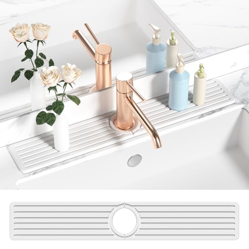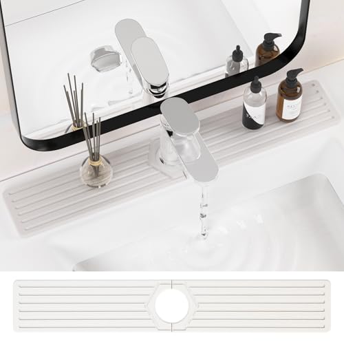 Faucet Mat for Kitchen Sink with Raised Feet - 60CM Super Absorbent Diatomite Fast Drying Stone Splash Guard,Prevents Moisture Buildup Sink, Durable Protector for Kitchen,Bathroom Counterr (White)