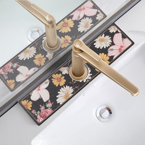 LOPNUR Faucet Mat for Kitchen Sink Protectors, 24 Inch Long Kitchen Sink Splash Guard Behind Faucet, Cuttable Bathroom Water Splash Guard with Super Absorbent Diatomite Fast Drying, Black