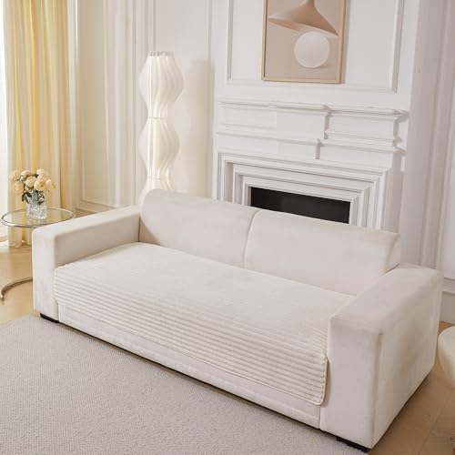KaviKon Couch Cover for Dogs, Boho Sofa Covers for 3 Cushion Couch, Chenille Sofa Slipcover for Pets Washable, L-Shape Sectional Loveseat Cover Soft Throw Blankets with Tassels(71x118,Striped Beige)