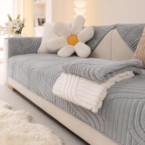 smiry Couch Cover for Dogs Washable, Non Slip Fuzzy Pet Couch Covers for 3 Cushion Sofa Pet Friendly, Thick Soft Sofa Slipcovers Cushion Protector (Grey, 27.6" x 70.9")