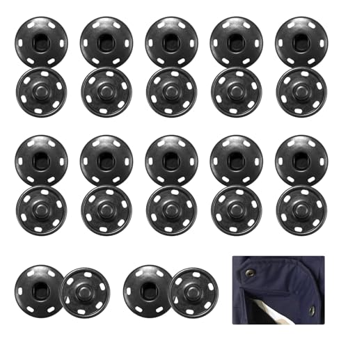 HARFINGTON 50 Set Sew-on Snap Buttons 17mm Metal Snap Fastener Buttons Fastener Press-Stud Clasps for Closure Purse Handbag Clothes Sewing Craft, Gold