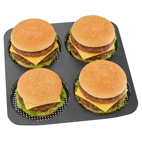 LYDODOKA 5 Inch Hamburger Buns Pan, Non-Stick Carbon Steel Bread Baking Mold, 4 Cavity Big Baking Pan for Homemade Hamburger Bun Meat Pie Bread Mini Pizza