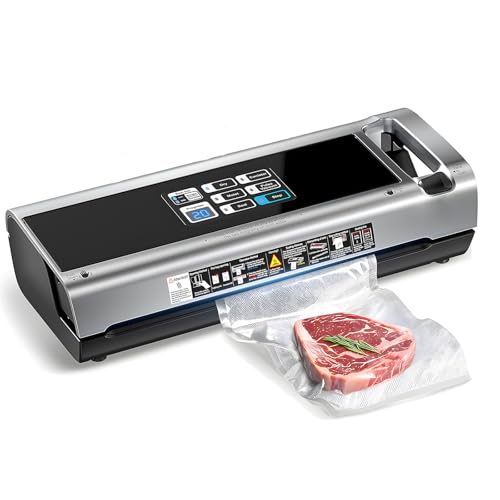 Vacuum Sealer for Food, 95kPa Food Vacuum Saver Sealer Machine, 12L/min 120W Fast-Sealing with Auto Tear-Cut,Digital Timer, Built-in Bag Storage, Cutter and One Bag Roll, 9-in-1 Compact Vacuum Sealer