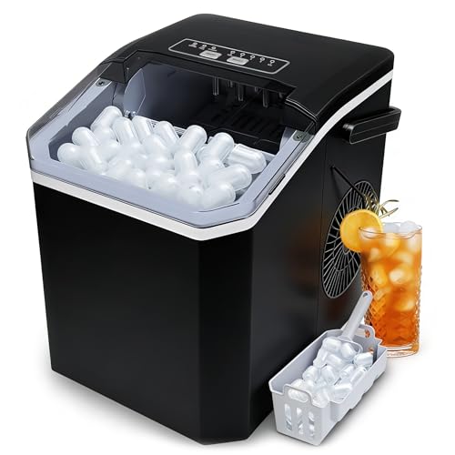 HAVATO Portable Ice Makers Countertop, 26 lbs/24H,Bullet Ice in 6 Mins, Small Ice Machine with Handle,Scoop,Basket & self-Cleaning, 2 Sizes for Drinks/Seafood, Ideal for Home, Party, RV, Camping