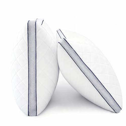 FluffCo Down Alternative Pillows Standard/Queen Size Set of 2 - Queen Bed Pillows for Sleeping - Made in USA - Cooling Surface and Machine Washable for Side, Back, and Stomach Sleepers
