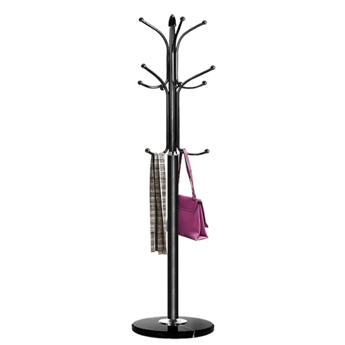 Barlezy 13.8" W Freestanding Coat Rack with Stable Base, Metal Coat Tree with Round Head Branch, 71" Heavy Duty Standing Coat Rack with 12 Hooks, Hat Hanger Stand Organizer