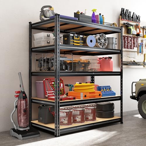 PXRACK 5-Tier Kitchen Storage Shelves, Adjustable Metal Shelves for Storage Pantry Shelves with Rolling Wheels, Storage Rack Shelving Unit Organizer for Bedroom Laundry Closet