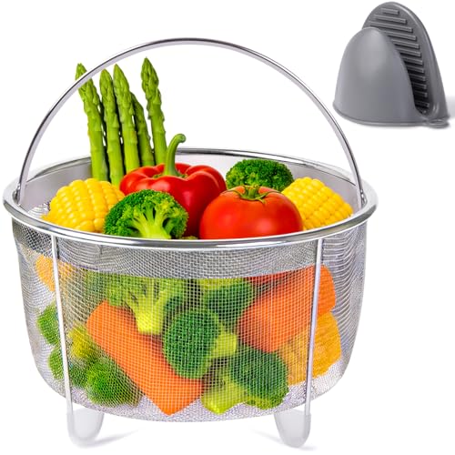 LxcshLjx Steamer Rack Trivet with Heat Resistant Silicone Handles, Compatible with Instant Pot Accessories 6 Qt 8 Quart, Pressure Cooker Trivet, Stainless Steel Steam Rack, Easy Removal Cook form Pot
