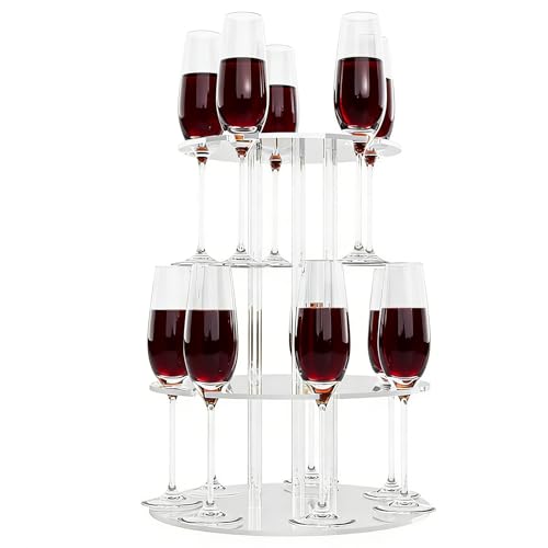 Peacoblue 25 Shot Glass Tray Holder with Heavy Base-Black, Clear Bar Circular Acrylic Cups Tray Holder Organizer with Central Bottle Slot for Parties, Clubs & Home Bars