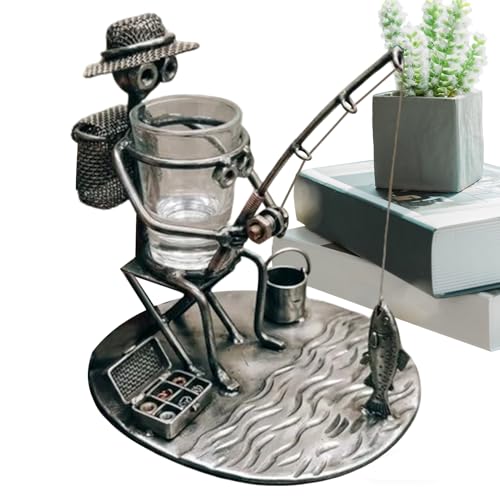 Wine Glass Holder - Metal Non-Slip Funny Fishermen Small Cup Holder, Fishing Rack Companion Desk Decor, For Home Kitchen Apartment Office Restaurant Bar Farmhouse Party Holiday