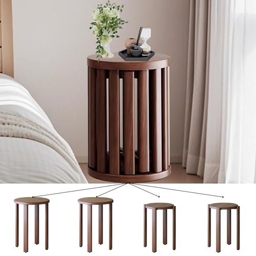 Stackable Stools Set of 4, 4-in-1 Carbon Steel Stacking Stools with Rubber Pads, Heavy-Duty Modular Barstools for Kitchen Living Room Office, Stable and Space-Saving Design(Walnut Color)