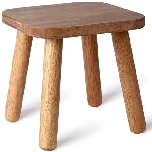 Wooden Step Stool 9inch Small Solid Wood Plant Stand Non-Slip Footstool Chair for Adults and Kids Portable and Sturdy Decor for Bed,Bathroom,Kitchen,Living Room Walnut Wood Color