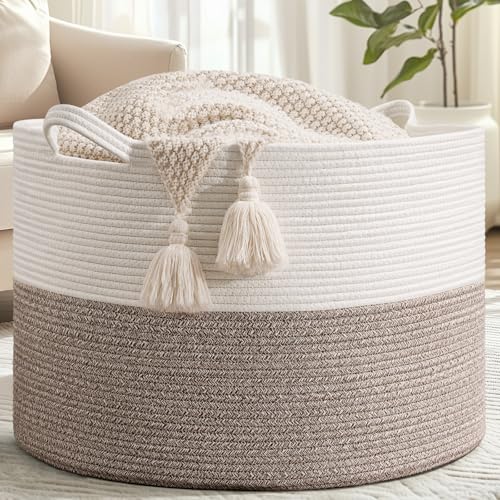 Goodpick Organizing Baskets, 13 x 10 x 9 Inches, Woven Storage Baskets for Shelves, Baby Gift Basket for Nursery, Small Decorative Laundry Basket 3 Pack, panier rangement, White & Brown