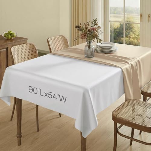 habibee Table Cloths Tablecloth Tables Stain and Winkle Resistant Polyester Washable Table Cover for Wedding Party Banquet Dining, 60脳84 Inch-6 Pack, White