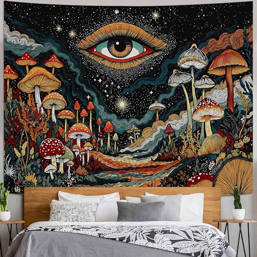 Simpkeely Blacklight Mountain Tapestry, Galaxy Meteor Aesthetic UV Reactive Tapestries, Forest Moon and Stars Starry Night Glow in the Dark Wall Hanging Tapestry for Bedroom, Living Room - 51" x 59"