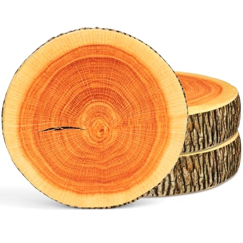 Log Pillow 2Pcs 15x15x3 Inch Wood Slice Round Throw Pillows with Sponge Stuffed Plush Floor Cushion for Home, Camping Tent