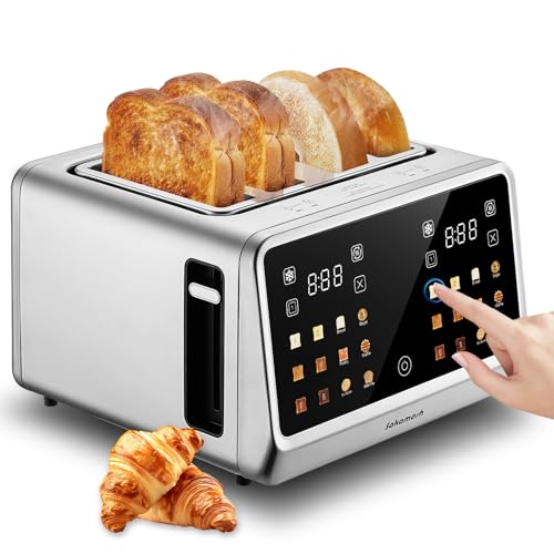 SEEDEEM Toaster 2 Slice, Stainless Steel Bread Toaster with LCD Display and Touch Buttons, 50% Faster Heating Speed, 6 Bread Selection, 7 Shade Settings, 1.5''Wide Slots Toaster with Cancel/Defrost/Reheat Functions, Removable Crumb Tray, 1350W, Dark Metallic