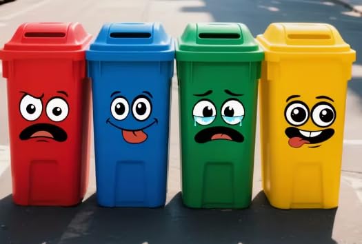 Funny Trash Garbage Can Stickers | 4 Sheets Self-Adhesive Removable Decals,4 Sheets Cartoon Face Stickers - for Fridge Bucket Driveway Garden Outdoor Indoor Patio Bathroom