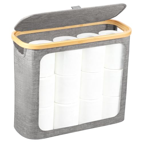 Dotpilgo Extra Large Toilet Paper Storage Basket with Lid Slim Toilet Paper Basket Holder Bin Container Organizer for Bathroom Hold up to 20 Regular Rolls or 15 Mega Rolls