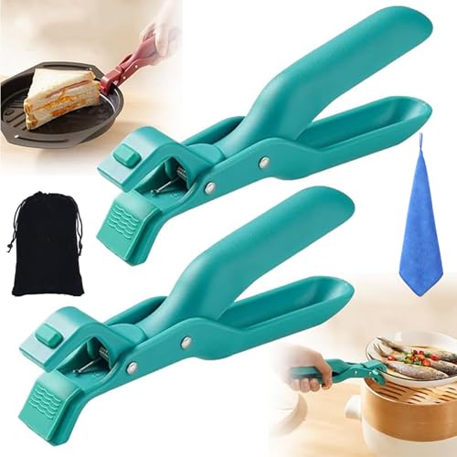 2Pcs Hot Plate Gripper, Multi Angle Hot Plate Gripper Tongs Lifters, Kitchen Anti-Scald Bowl Holder Clips, Silicone Non-Slip Heat Insulation Clamp, Air Fryer Pans Gripper for Dish Bowls (Red+Blue)