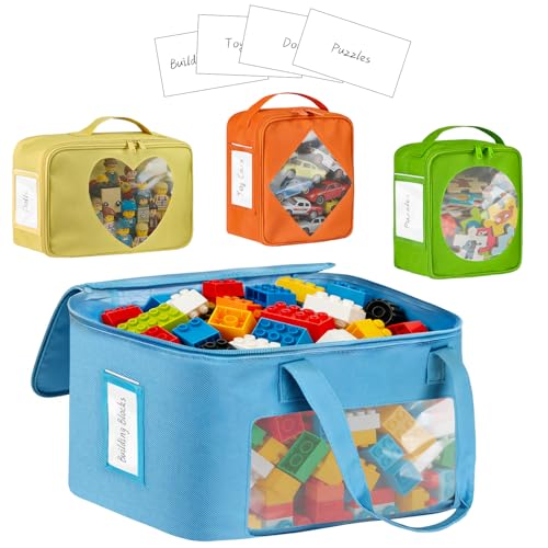 4 Packs Extra Large Toy Storage Bags with Zipper, Reusable Clear Plastic Toy Organizer Bag with Labels for Blocks, 11.8鈥趁8.6鈥趁3.9鈥 Travel Waterproof Organizer Bags for Puzzles, Cosmetics(4 Colors)