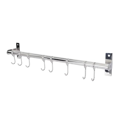 Attarrior Kitchen Utensil Holder Hanger, Pot and Pan Rack wall mounted, Kitchen Rail with Hooks for Hanging Cooking Utensils, Mugs, Spoons, Wall Mounted, Black. (50cm-8 Hooks)